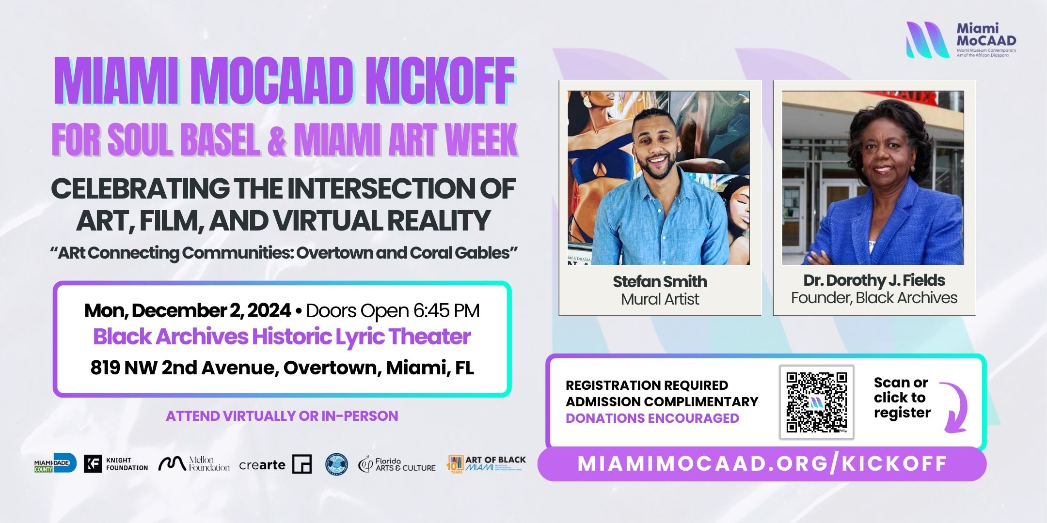 Miami MoCAAD will host a screening of the documentary and virtual reality art exhibition, "ARt Connecting Communities: Overtown and Coral Gables," on Monday, December 2, 2024, from 7 PM to 10 PM at the Black Archives Historic Lyric Theater. The evening will feature replicas of interactive murals, oral history QR codes, music, refreshments, and opportunities to mix and mingle.