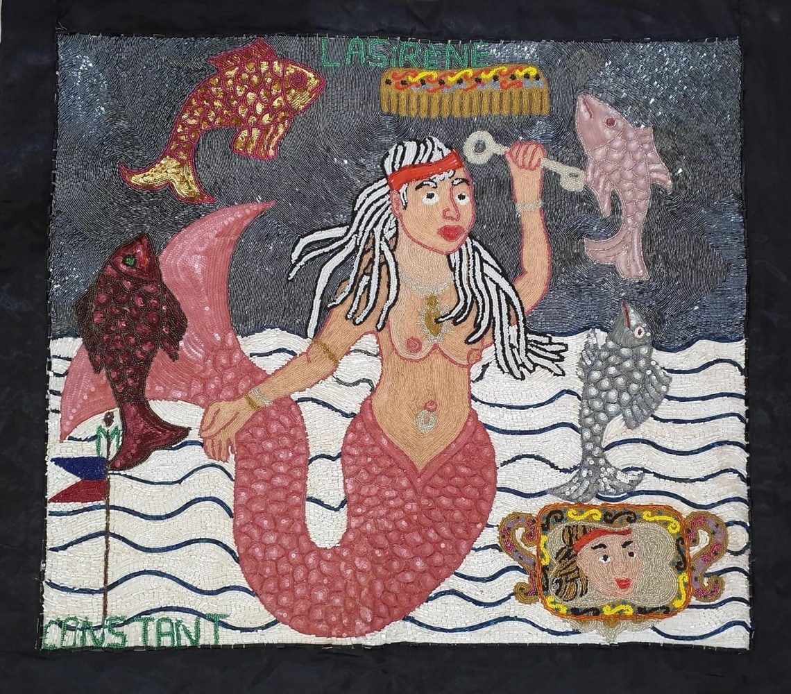 Myrlande Constant has revolutionized the traditionally male-dominated drapo Vodou art form by incorporating her expertise in tambour embroidery, learned during her time in the wedding dress industry. Her works, characterized by vibrant materials and textures, transcend conventional religious artifacts, positioning them within the global fine art sphere. Despite Haiti's current challenges, Constant's art serves as a testament to resilience and cultural pride, offering viewers a profound insight into the spiritual and communal facets of Haitian life.